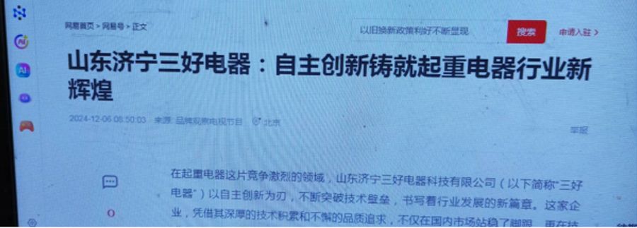 濟(jì)寧三好電器堅持自主創(chuàng)新和產(chǎn)品戰(zhàn)略,得到國家官媒新華社及國內(nèi)各大媒體的關(guān)注。于2024年11月4號和2024年11月5日,新華社及各大媒體連續(xù)發(fā)2次新聞稿,對濟(jì)寧三好電器進(jìn)行了專題新聞報道。