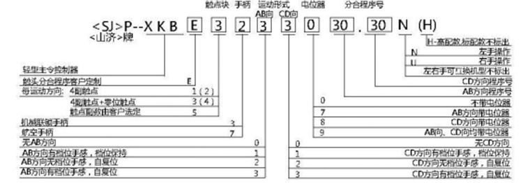 a.替代法國施耐德XKB機型。聯(lián)動操作限位到2檔。前后(AB向)操作和左右(CD向)操作可同時到達2檔位置。當AB向到達3檔時,CD向只能到達1檔。而AB向到達1檔,CD向可到達3檔。