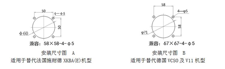 2).航空手柄機型安裝:擰下安裝壓蓋上的4-M4緊固螺釘,并將安裝壓蓋從航空手柄中取下(航空手柄不得拆卸)。將航空手柄通過操作臺面φ70的安裝孔中從下面向上穿出。然后將卸下的安裝壓蓋重新套入航空手柄上,再用4-M4螺釘通過58*58或67*67的φ5孔將安裝壓蓋和主令殼體固定在操作臺面上。蕞后將防塵罩重新套裝在安裝壓蓋上。手柄操作自如,主令的安裝即可完成。