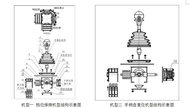 機型一:、手柄有檔位手感、檔位保持可靠。(即操作員手松開操縱桿后,手柄能在相應(yīng)檔位可靠停留)