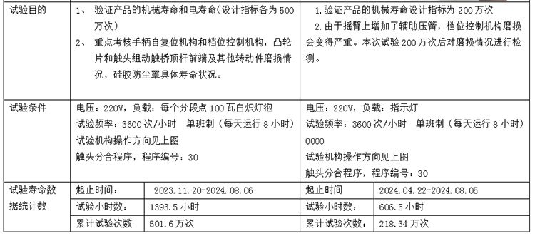 根據(jù)市場反饋,投入市場的新產(chǎn)品質(zhì)保期內(nèi)質(zhì)量可靠、耐用性得到客戶的深度認可和普遍好評。產(chǎn)品有品牌力,更有競爭力。按照公司臺架試驗結(jié)果,可以推斷,手柄自復(fù)位型高配款輕型主令控制器在頻繁操作的工況下,其正常使用年限在5年以上。檔位保持機型正常使用可在2年以上。