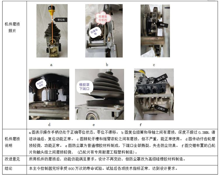 為了準(zhǔn)確的弄清現(xiàn)有產(chǎn)品的具體質(zhì)量問(wèn)題,我公司科技人員對(duì)從終端客戶手中拿到的多臺(tái)廢舊主令控制器進(jìn)行逐個(gè)拆解分析研究。對(duì)從生產(chǎn)企業(yè)采購(gòu)的新樣機(jī),我們都進(jìn)行了臺(tái)架帶電壽命試驗(yàn)考核,分析臺(tái)架試驗(yàn)中出現(xiàn)的質(zhì)量問(wèn)題及原因。質(zhì)量問(wèn)題梳理如下: