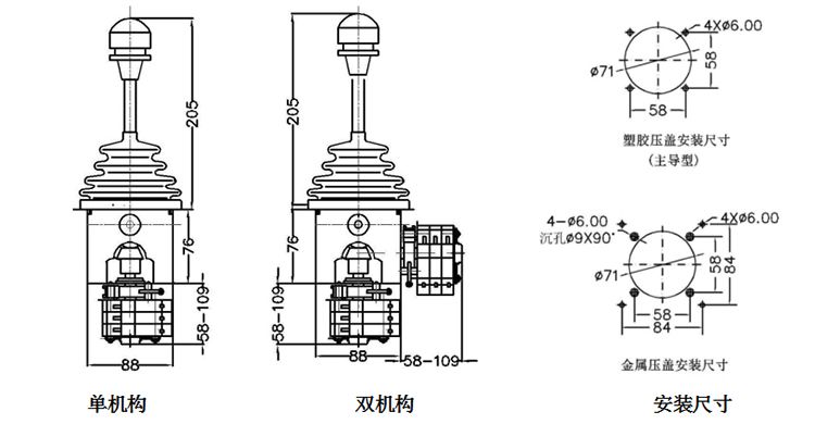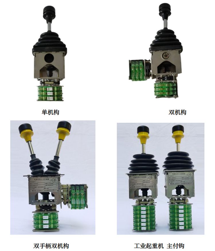1.分類:控制器按手柄分為單手柄單機構、單手柄雙機構,雙手柄雙機構三種類型。單手柄單機構控制器操縱一個凸輪軸組合開關,其手柄“一”字形操作;單手柄雙機構控制器操縱兩個凸輪軸組合開關,其手柄“十”字形操作或聯(lián)動操作;雙手柄雙機構控制器“一”字形操作,每一個手柄操作一個凸輪軸組合開關。