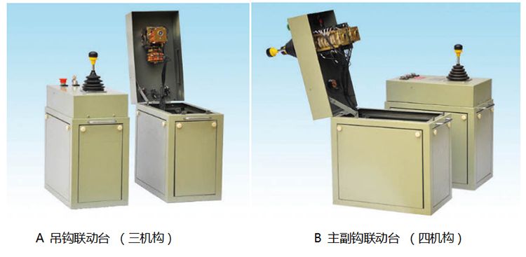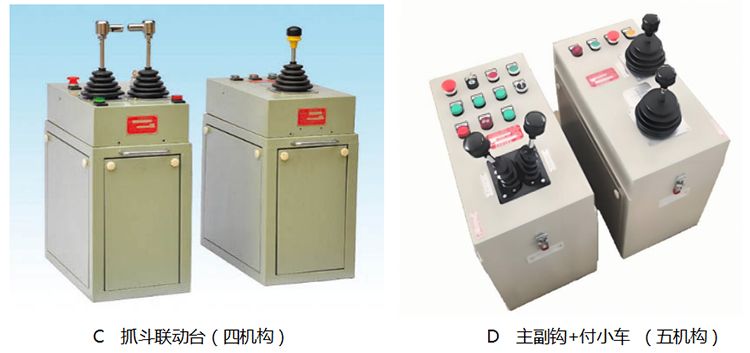 五機(jī)構(gòu)是左箱單手柄、雙機(jī)構(gòu)控制大車、小車,右箱單手柄雙機(jī)構(gòu)控制主副鉤和單手柄、單機(jī)構(gòu)控制特殊小車。